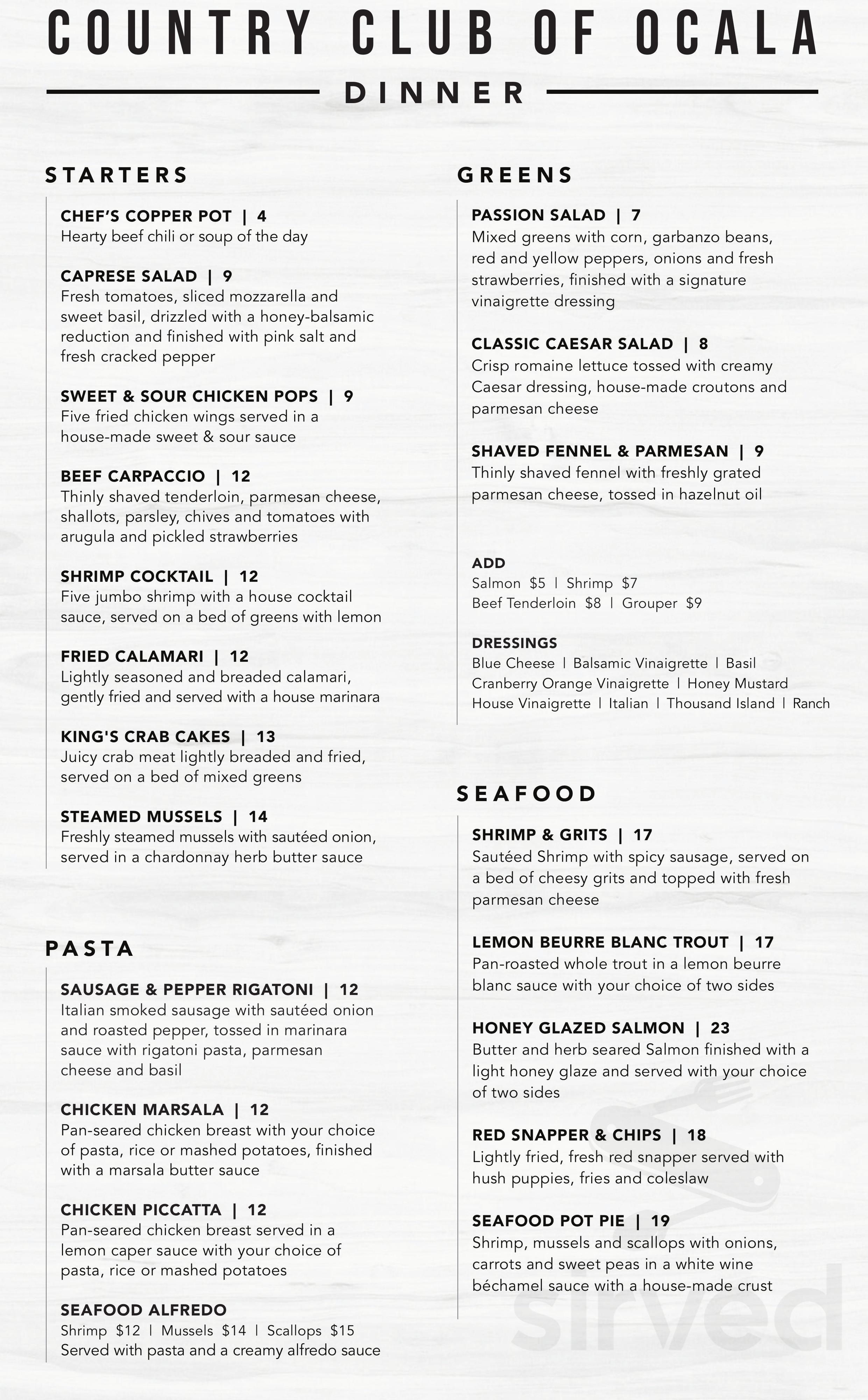 Country Club Of Ocala Menu In Ocala Florida Usa